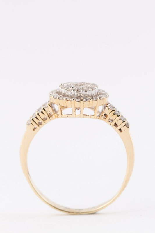 Gouden pavé gezette entourage ring met 56 briljanten.