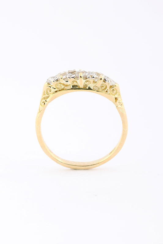 14 krt. gouden rij ring met 5 oud geslepen briljanten. Totaal ca. 0.50 ct.