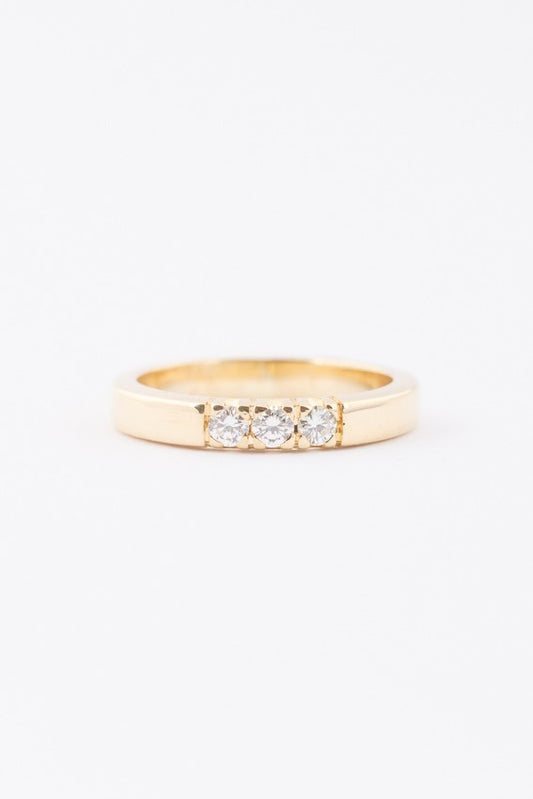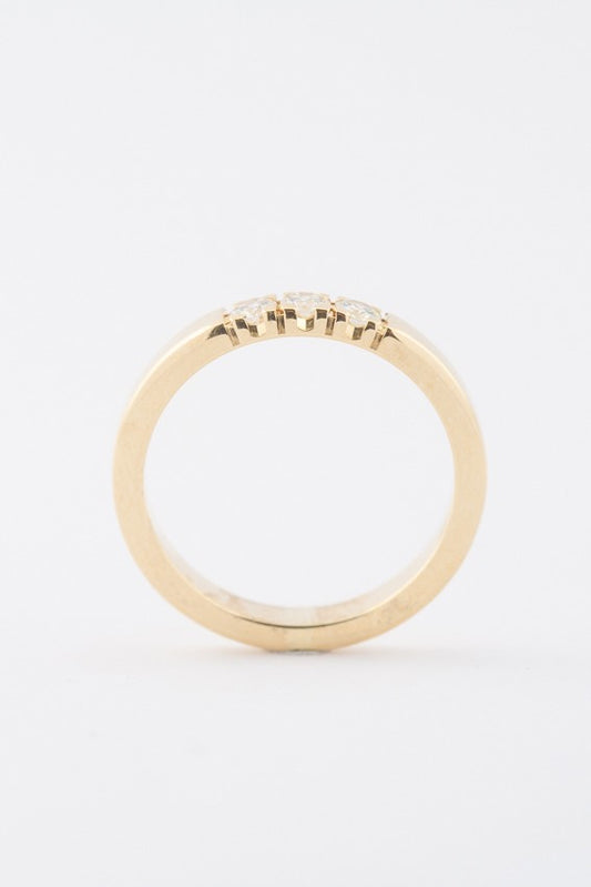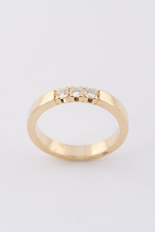Gouden rij ring met 3 briljanten. Totaal ca. 0.15 ct.