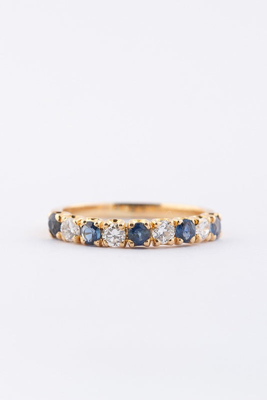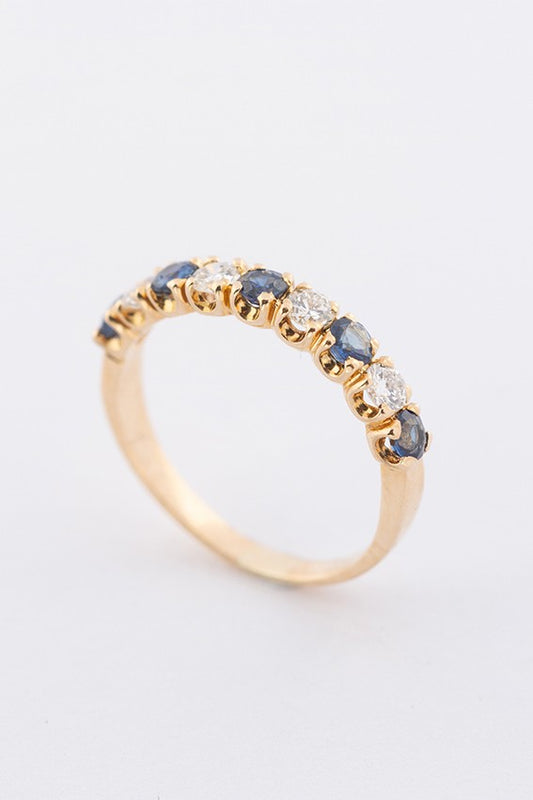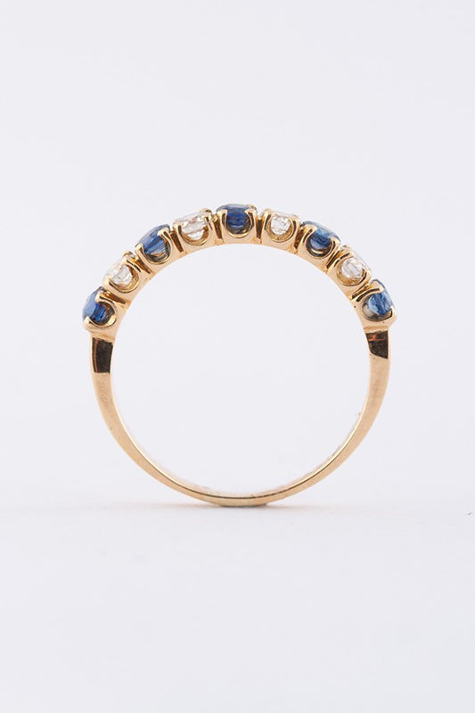 Gouden rij ring met 5 saffieren en 4 briljanten