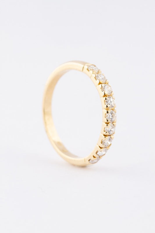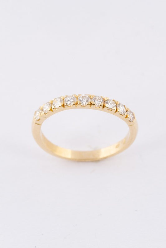 Gouden rij ring met 9 briljanten. 0.45 ct.