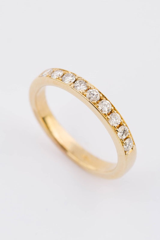 18 krt. gouden rij ring met 9 briljanten. Totaal ca 0.36 ct.