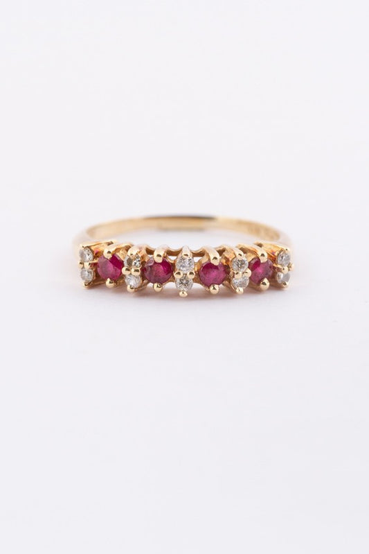 Gouden rij ring met robijnen en briljanten