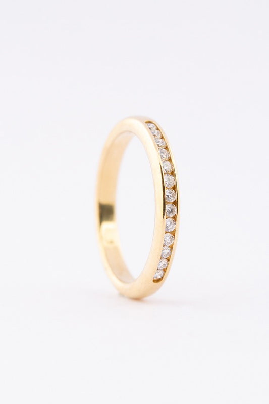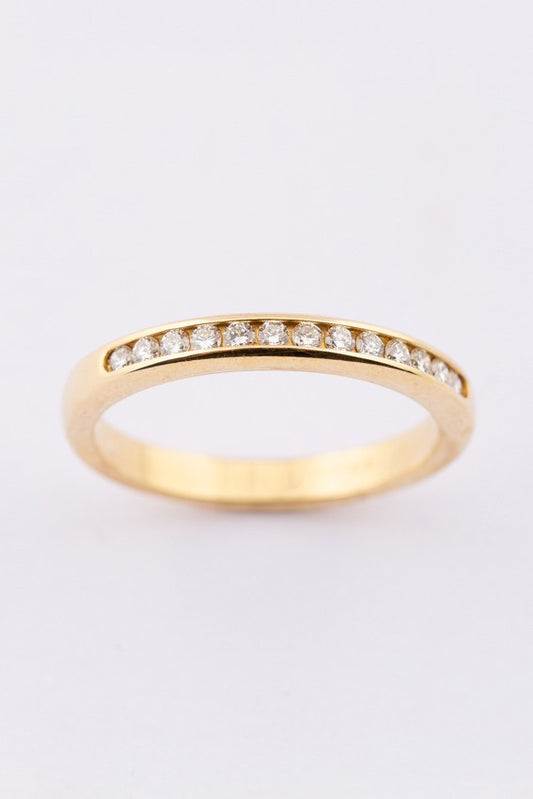 18 krt. gouden rijring met 13 briljanten. Totaal 0.13 ct.