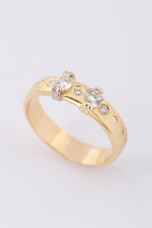 Gouden ring met 5 briljanten. Totaal ca. 0.54 ct.