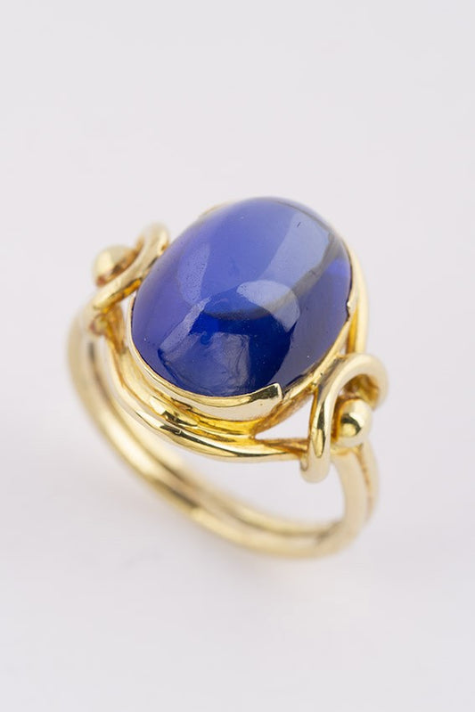14 krt gouden ring met cabochon geslepen synthetische saffier.
