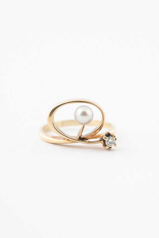 Gouden ring met een cultivé parel en een briljant