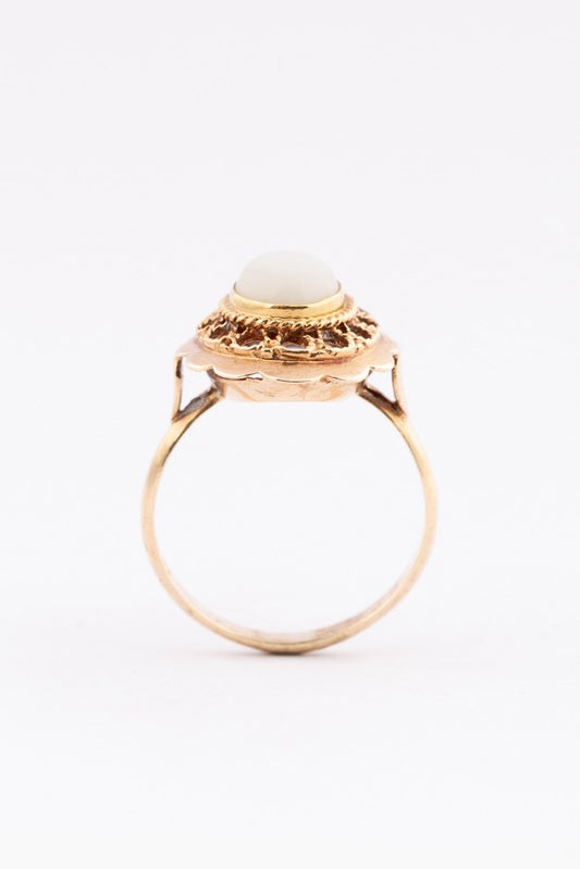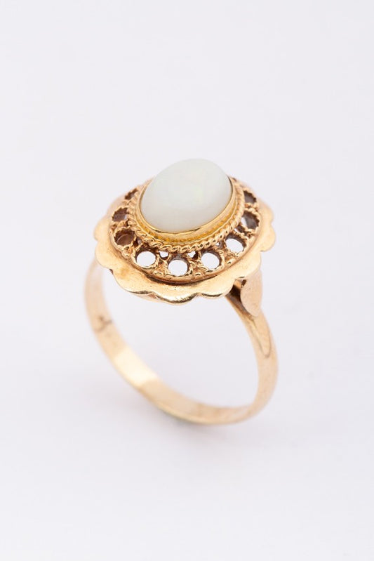 Gouden ring met melk opaal