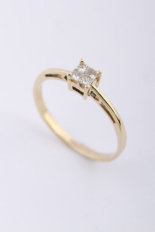 14 krt. gouden ring met 4 prinses geslepen diamanten.