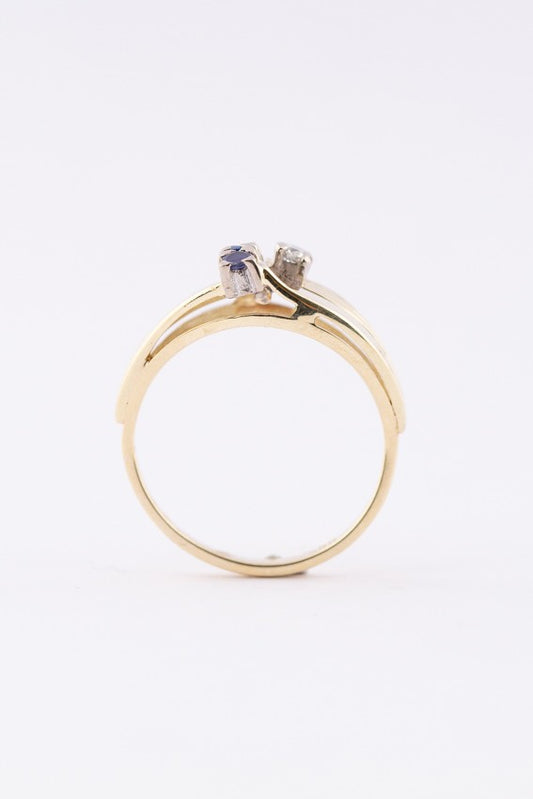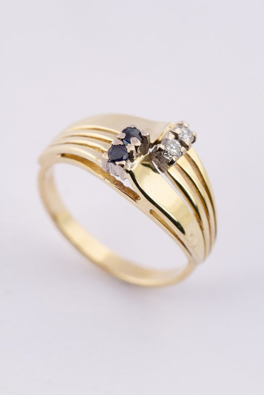 14 krt. gouden slag ring met 2 saffieren en 2 briljanten.