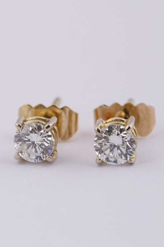 Gouden solitair oorknoppen met briljant