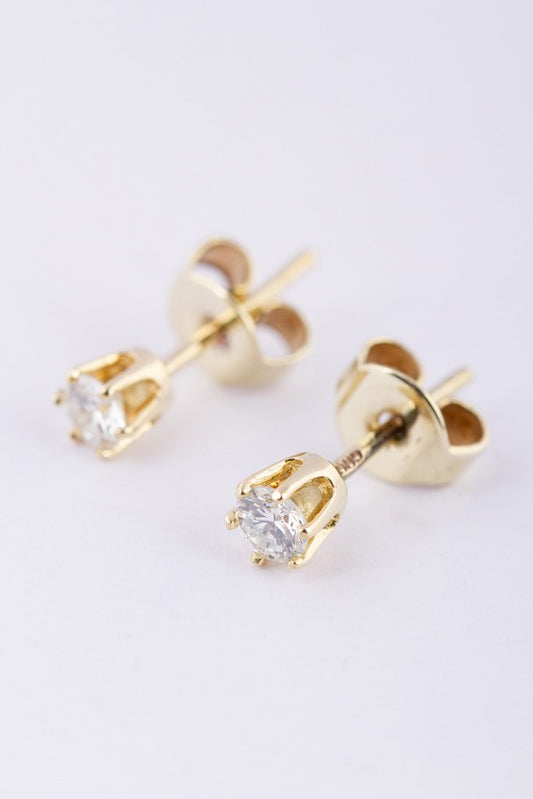 14 krt. gouden solitair oorknoppen met in elk een briljant van 0.13 ct. Totaal 0.26 ct.