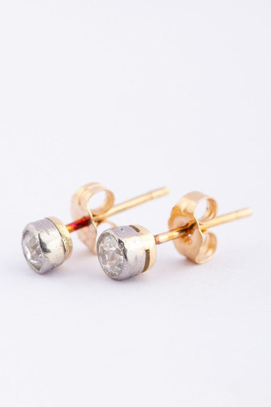 Wit/geel gouden solitair oorknoppen met oud slijpsel briljant