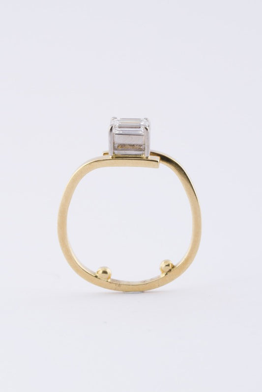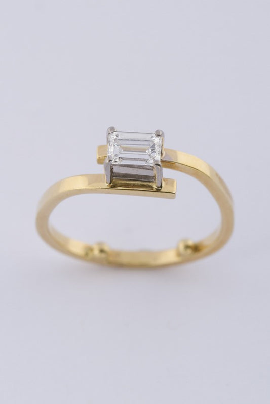 Gouden solitair ring met diamant (smaragd slijpsel)