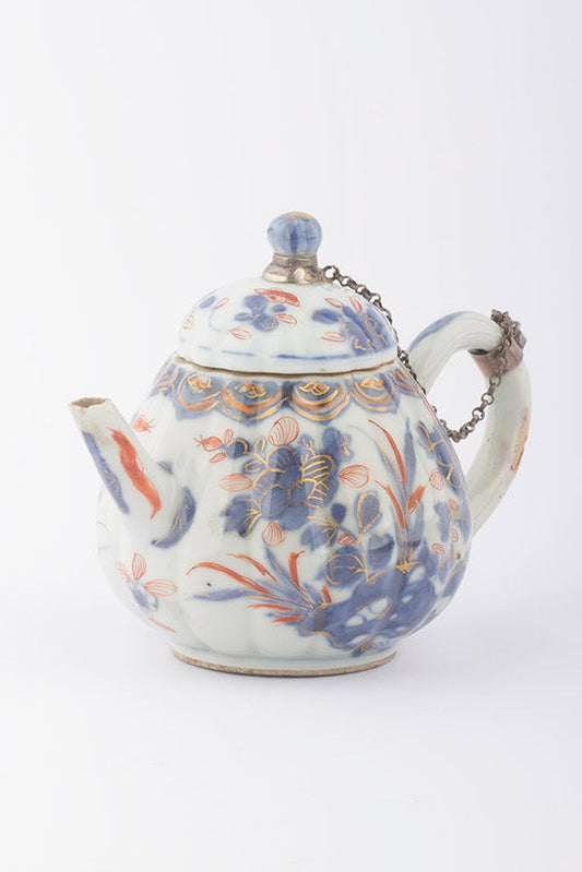 Antiek imari trekpotje. 18e eeuw met zilveren ketting.