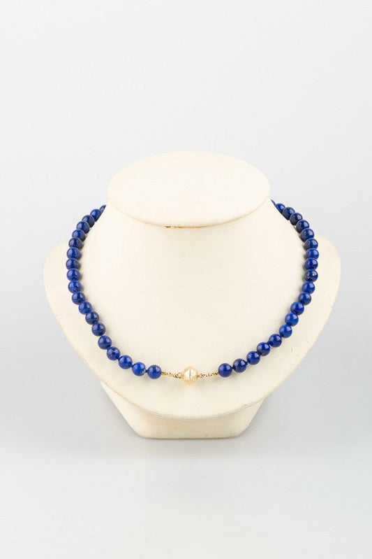 Lapis lazuli collier aan 14 krt. gouden paston sluiting.