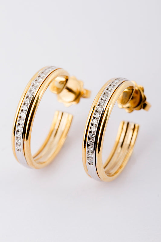 18 krt. gouden oorringen met in elk 18 briljanten.