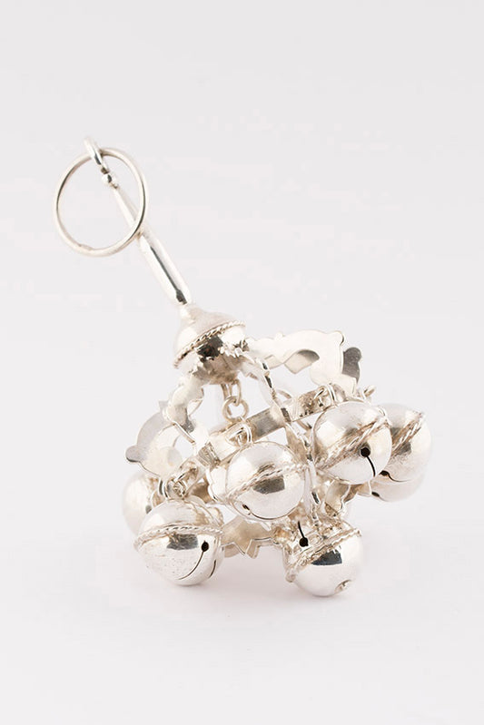 Oude zilveren baby rammelaar met bellen (2de gehalte).