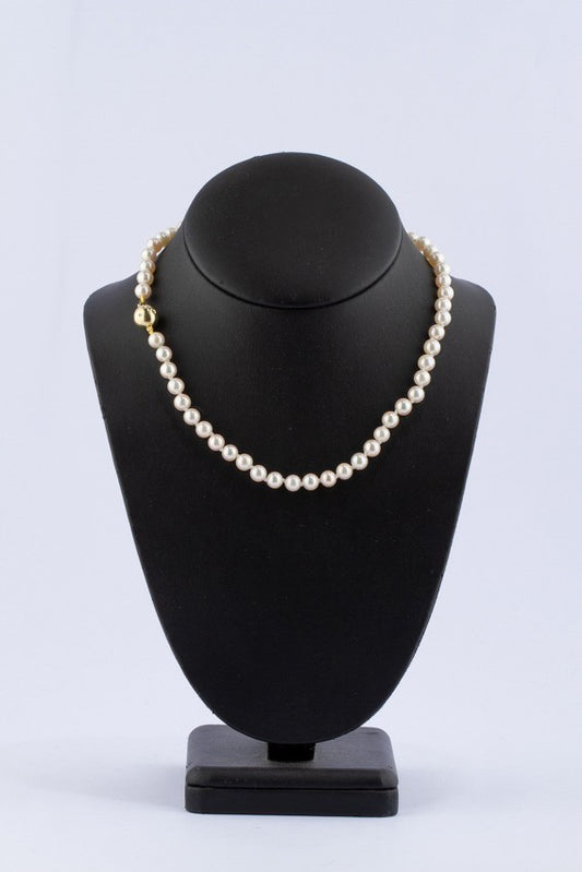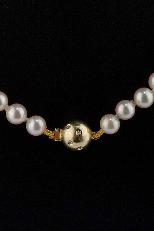 Cultivé parel collier aan 14 krt. gouden bolsluiting met diamanten (8-kant).