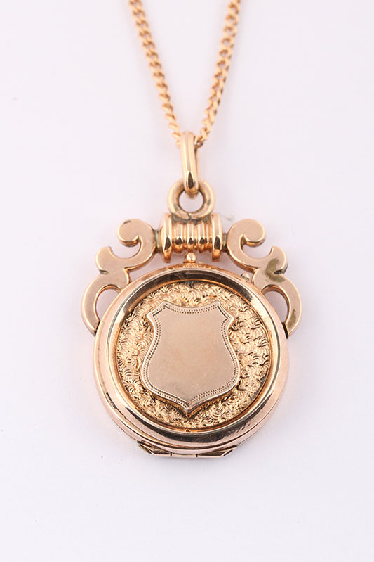 14 krt. rosé gouden medaillon aan lang rosé gouden gourmet colier.