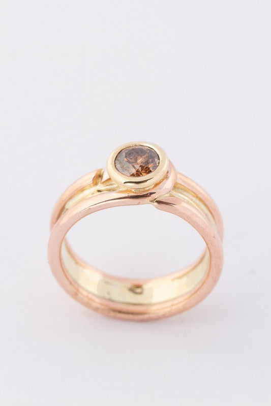 Rosé/geel gouden bi-color gouden ring met een bruine briljant