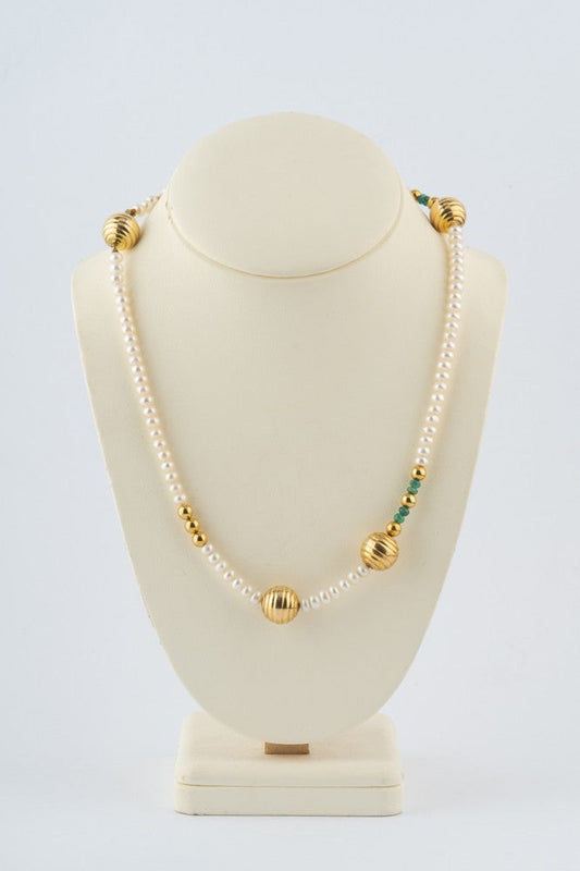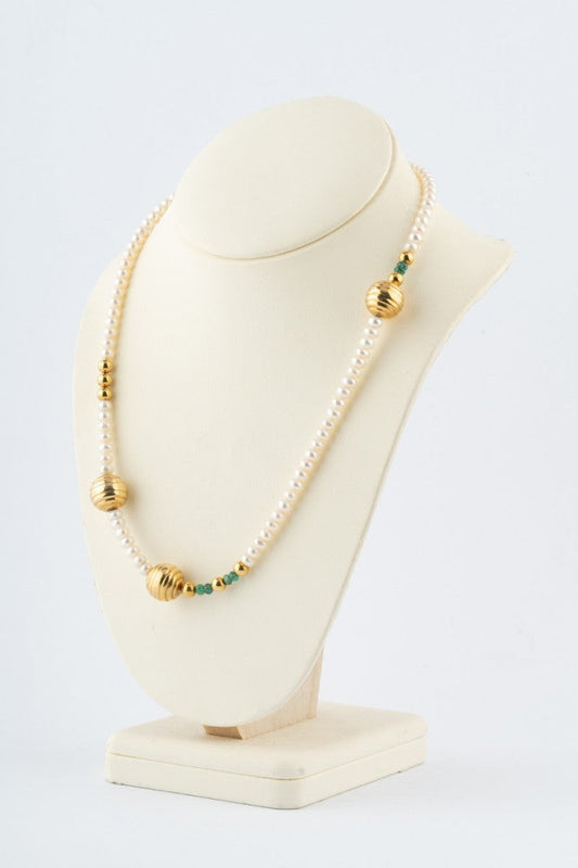 Schoeffel parel collier met gouden tussen schakels en smaragden