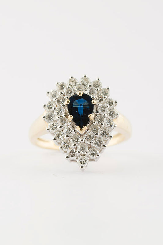 Wit/geel gouden dubbele entourage ring met saffier en briljant