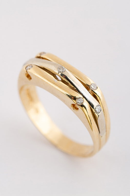 14 krt. wit/geel gouden ring met 7 briljanten.