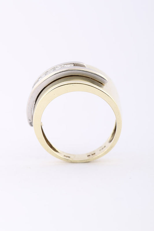 14 krt. wit/geel gouden ring met 4 prinses geslepen briljanten. Totaal 0.30 ct.