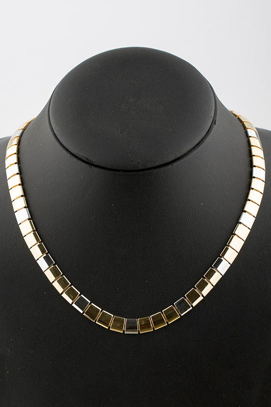 14 krt. wit/geel gouden schakel collier met veiligheidssluiting.