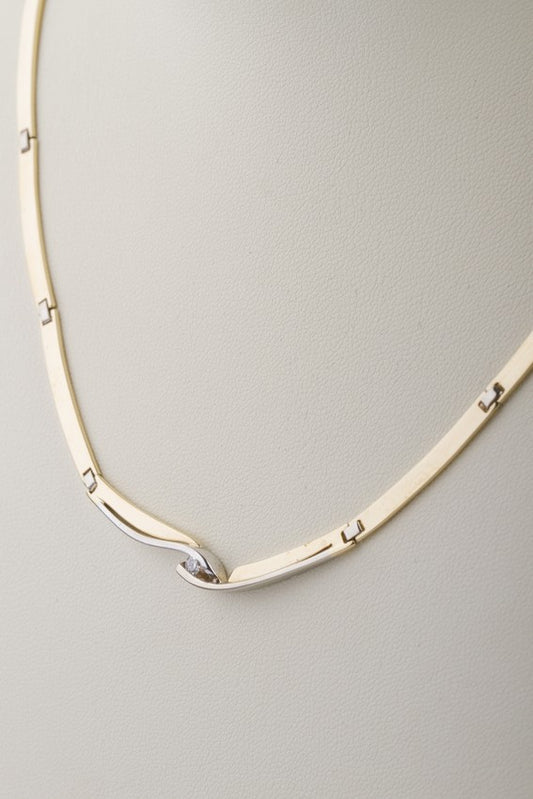 14 krt. wit/geel gouden schakel collier met een briljant van ca. 0.05 ct.