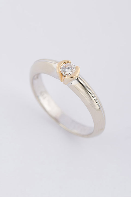 14 krt. wit/geel gouden solitair ring met een briljant van ca. 0.14 ct.