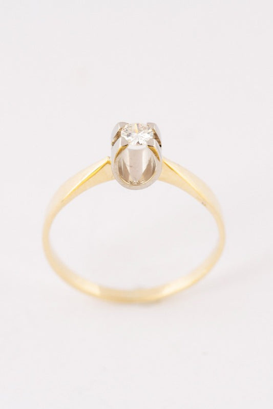 Wit/geel gouden solitair ring met een briljant