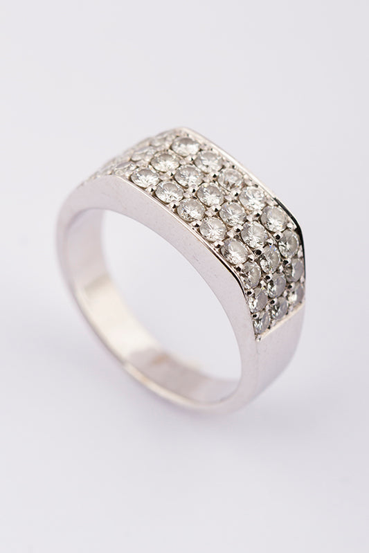 18 krt. wit gouden aandring met 33 briljant geslepen diamanten. Totaal ca. 1.00 ct.