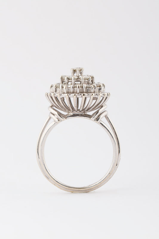 18 krt. wit gouden dubbele entourage ring met 19 briljanten. Totaal ca. 0.95 ct.