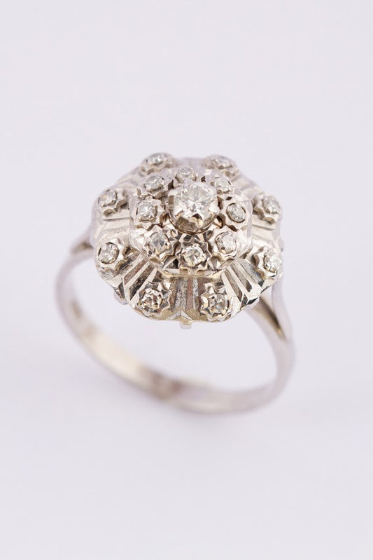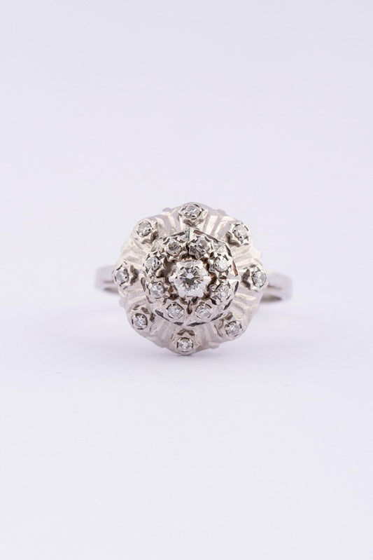 Wit gouden dubbele entourage ring met diamanten