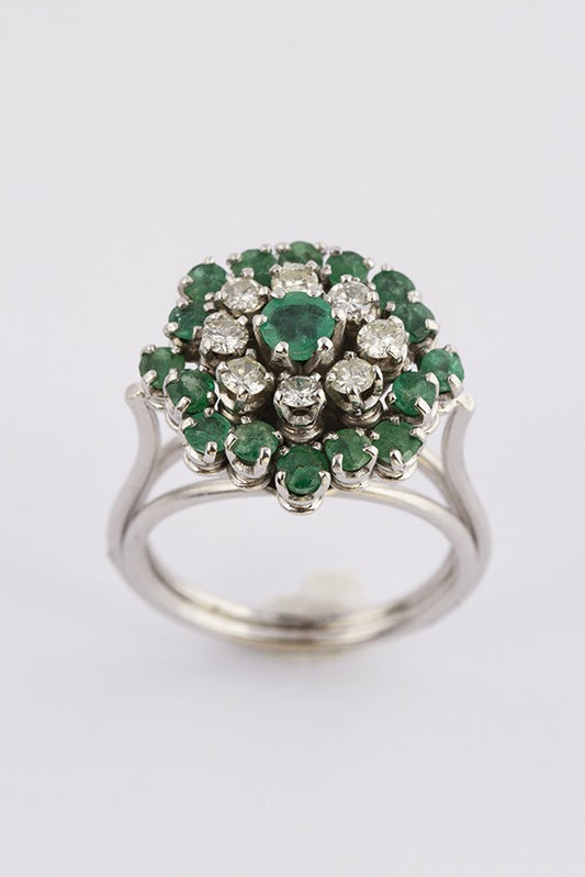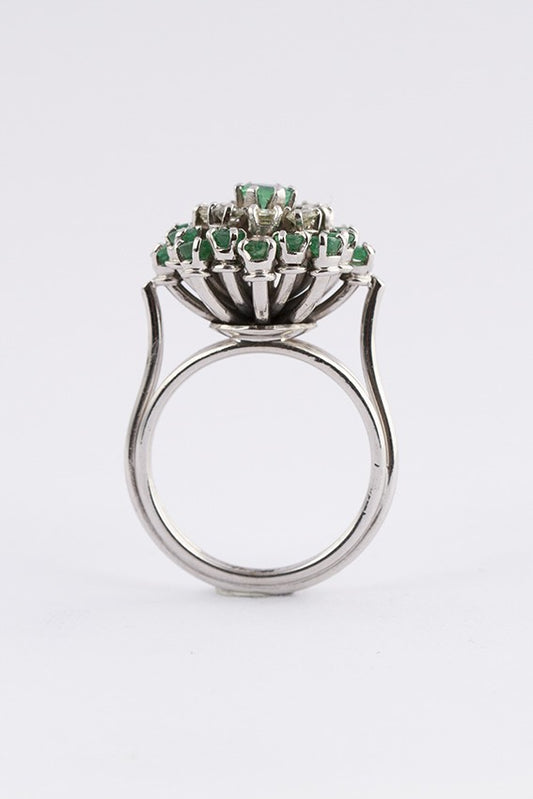 Wit gouden dubbele entourage ring met smaragden en briljanten