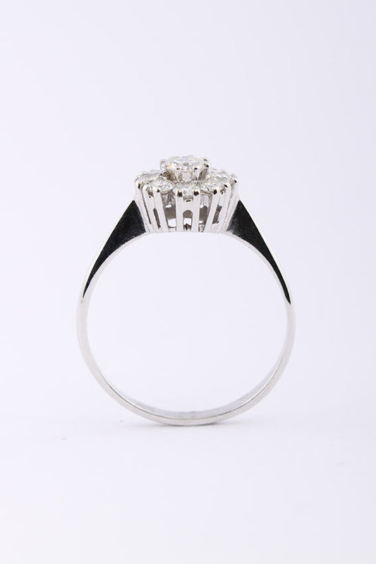 14 krt. wit gouden entourage ring met 9 briljanten. Totaal ca. 0.56 ct.