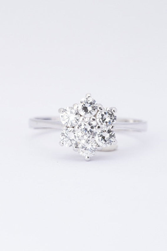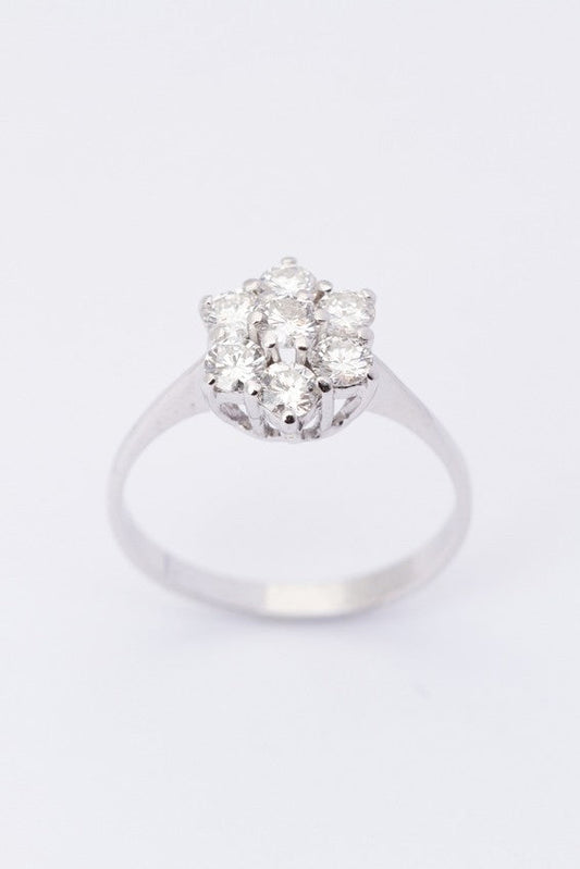 Wit gouden entourage ring met 7 briljanten. Totaal 0.90 ct.