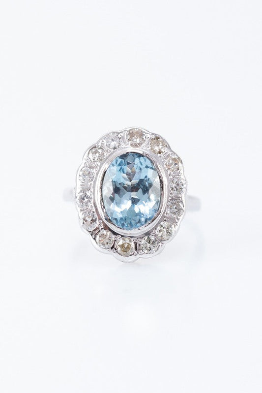 Wit gouden entourage ring met natuurlijke aquamarijn en briljanten