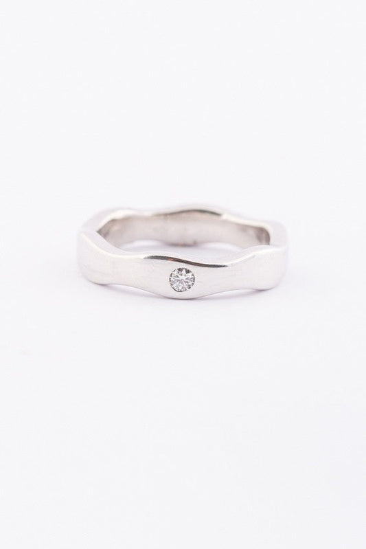 Wit gouden golvende ring met een briljant