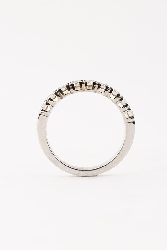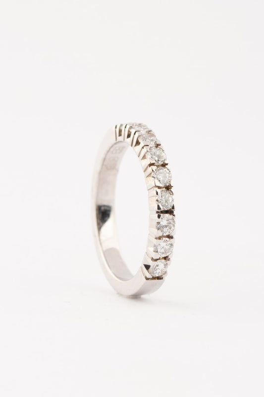 14 krt. wit gouden half alliance ring met 9 briljanten. Totaal ca. 0.63 ct.