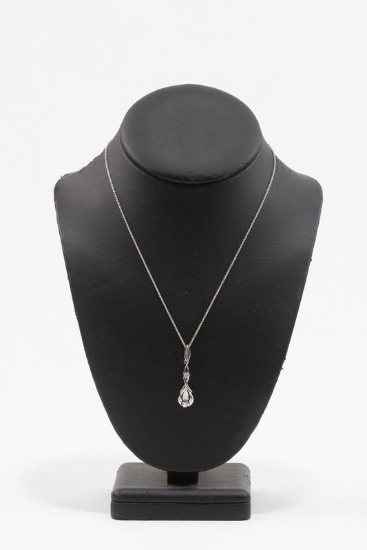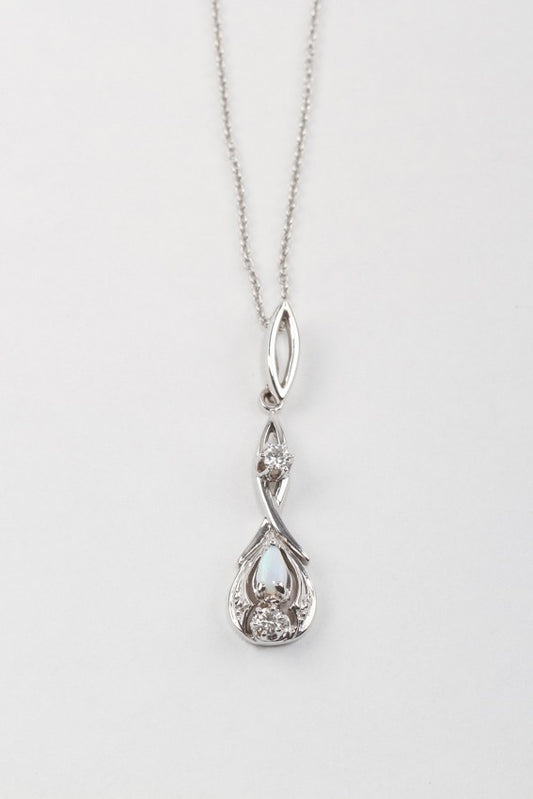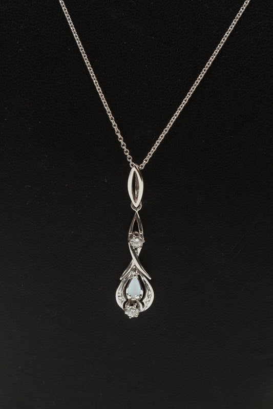 Wit gouden hanger met een melk opaal en 2 briljanten