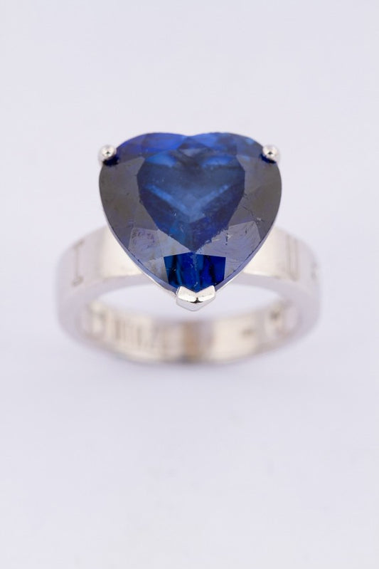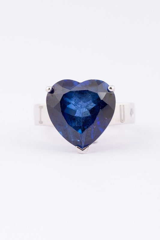 14 krt. wit gouden I-love-u ring van het merk Otazu met een briljant en een synthetische saffier in hartvorm.