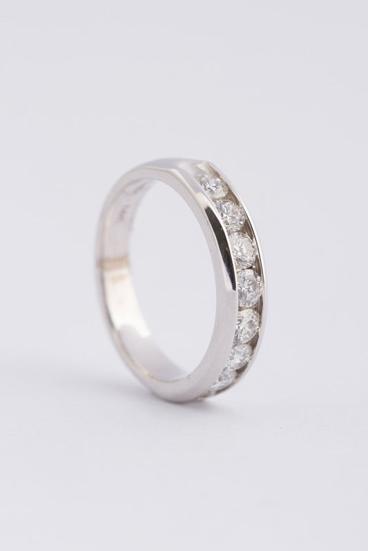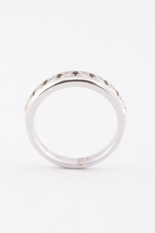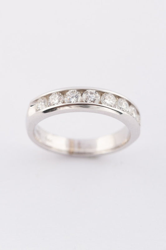 Wit gouden rij ring met 8 briljanten. Totaal ca. 1.00 ct.
