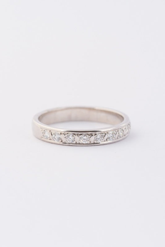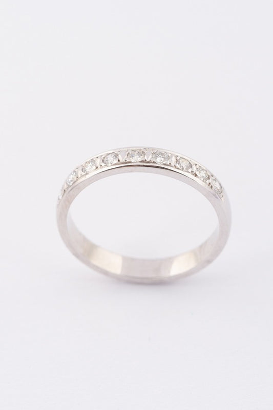 Wit gouden rij ring met 9 briljanten. Ca. 0.18 ct.