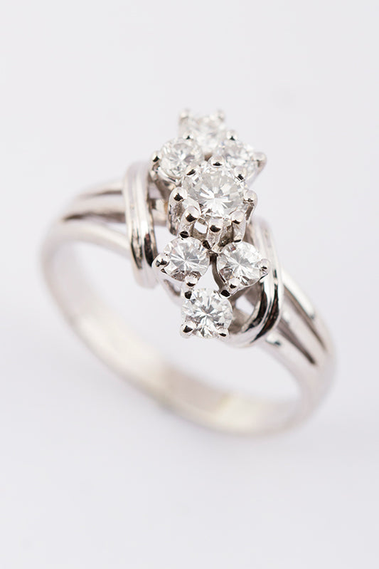 14 krt. wit gouden ring met 7 briljanten. Totaal ca. 0.53 ct.