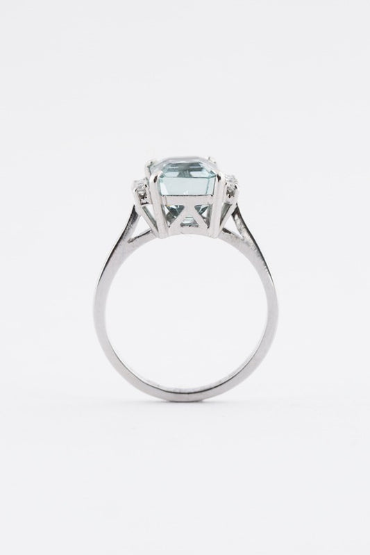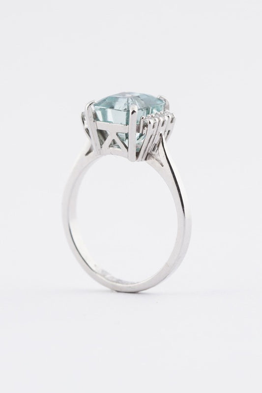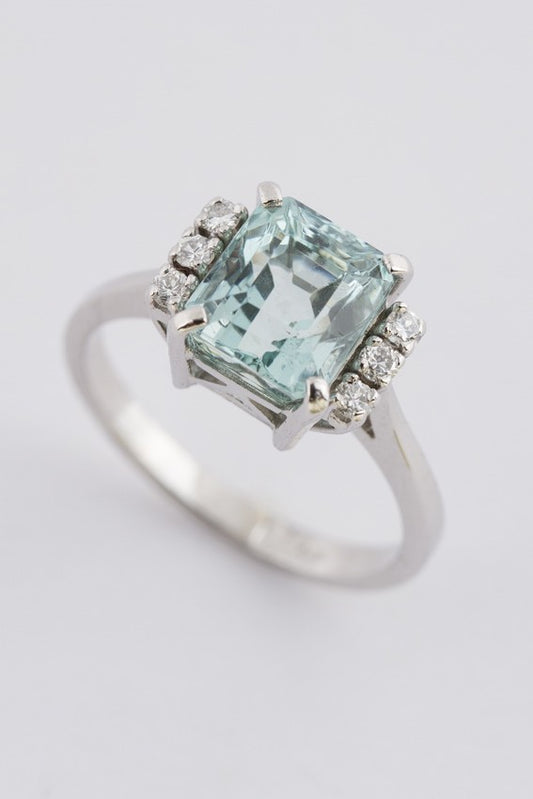 Wit gouden ring met aquamarijn en briljanten