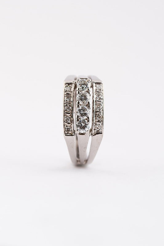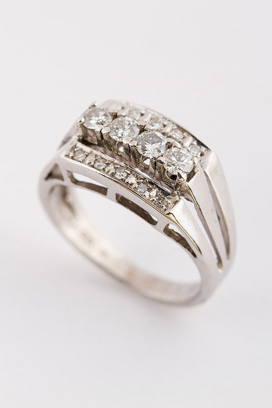 14 krt. wit gouden ring met 4 briljanten en 10 diamanten(8-kant). Totaal ca. 0.5ct.