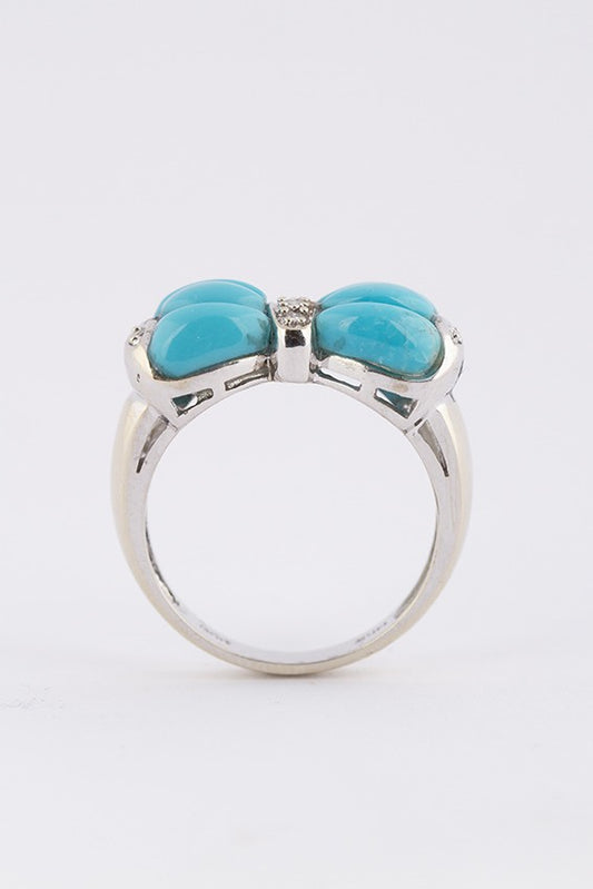 14 krt. wit gouden ring met 5 briljanten en turkoois.